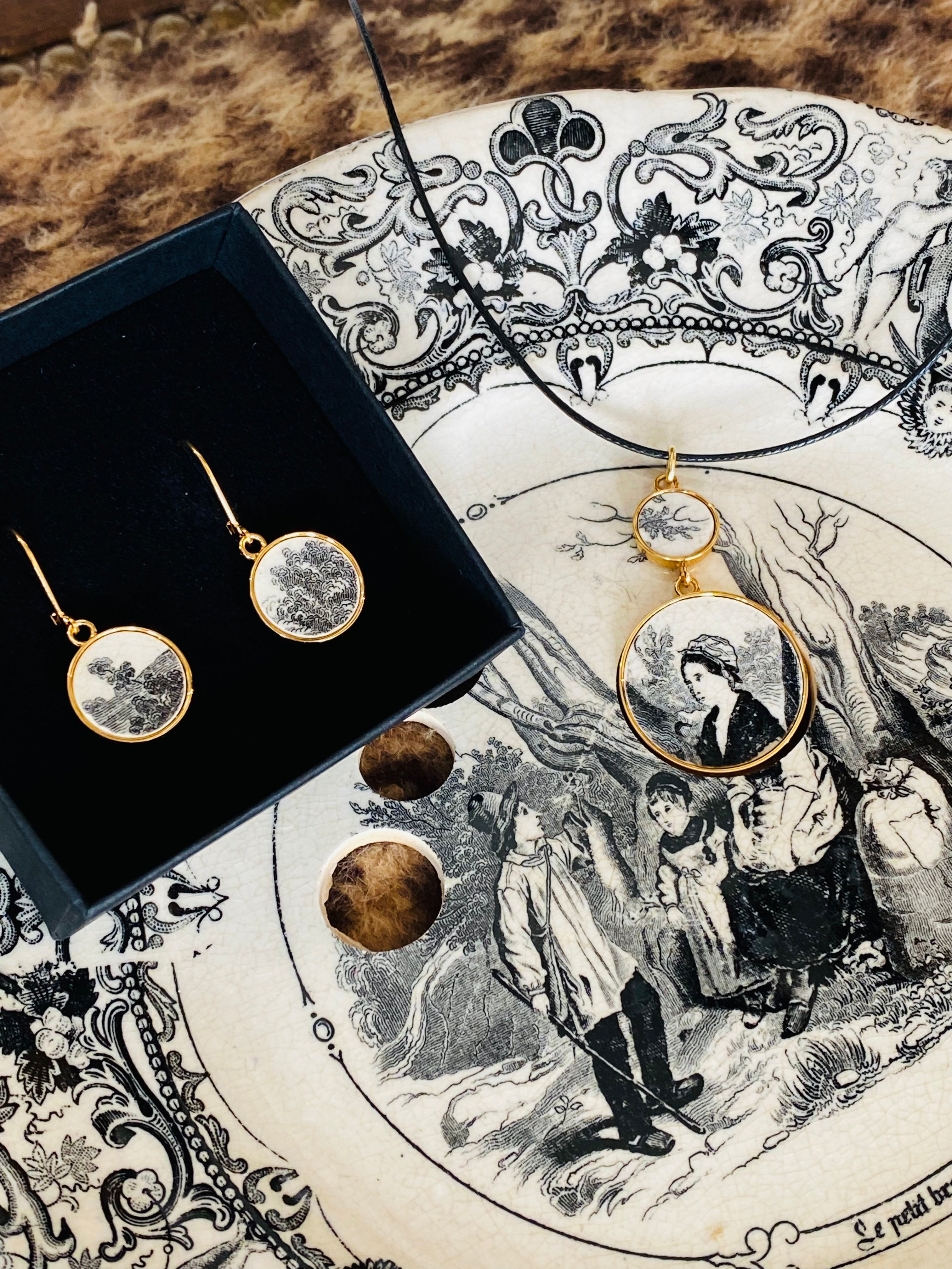 At the Vézanne workshop, Clélia creates bespoke jewelry for you using your family heirloom plates, transforming each piece into a precious keepsake. Whether it's a pendant, necklace, earrings, bracelet, or even a ring, we offer a wide range of choices to immortalize your happy moments.