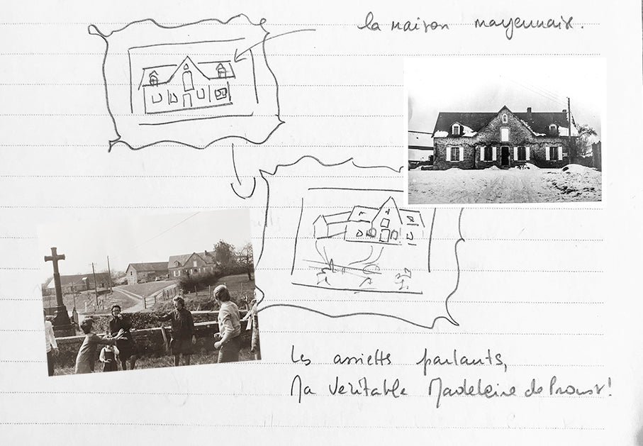 Family meals were a defining part of my childhood. Brought out on holidays or Sundays, they embodied the joy of reuniting around the delicious dishes prepared by my grandmothers. These moments, their aromas and flavors, are etched in my childhood memory . And the decorations… especially those on the talking plates, deeply moved me: their elegance, their refinement, their colors, and the humor they conveyed.
