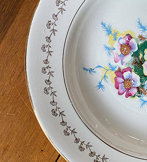 This small, elegant decoration of golden flowers was extracted from the rim of an antique earthenware plate to become a unique pair of earrings.